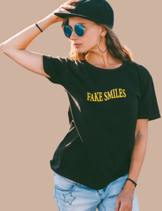 Fake Smiles” Graphic Tee – Black T-Shirt