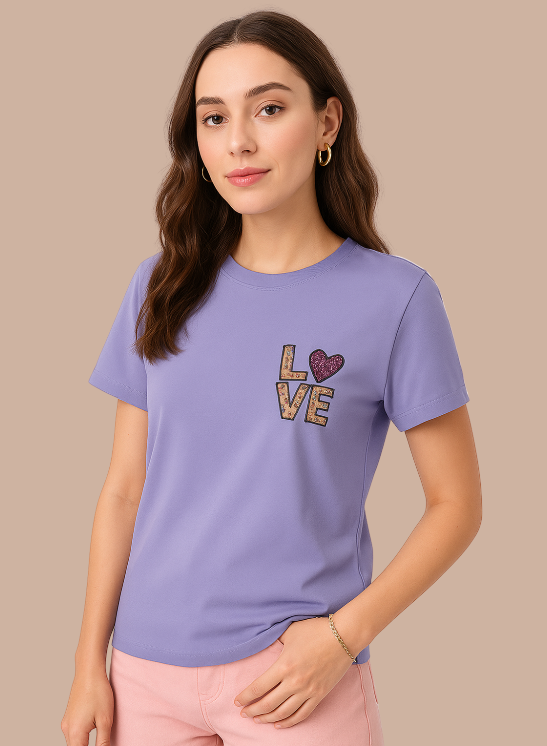 Women’s Lavender Regular Fit T-Shirt with “LOVE” Heart Patch | Soft Cotton Casual Tee